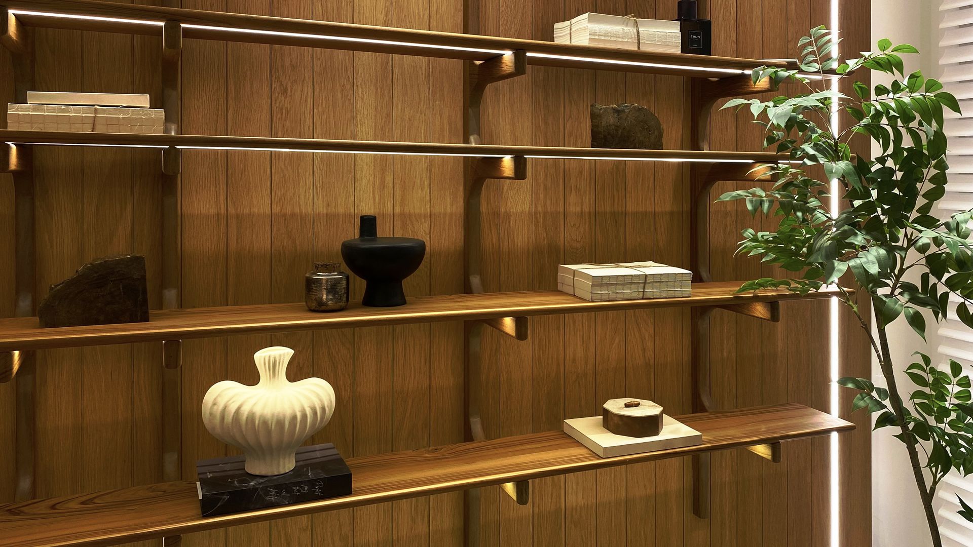從藝術擺件、香氛裝飾到收納層架,每項選品與佈置都強調功能與美感並存。