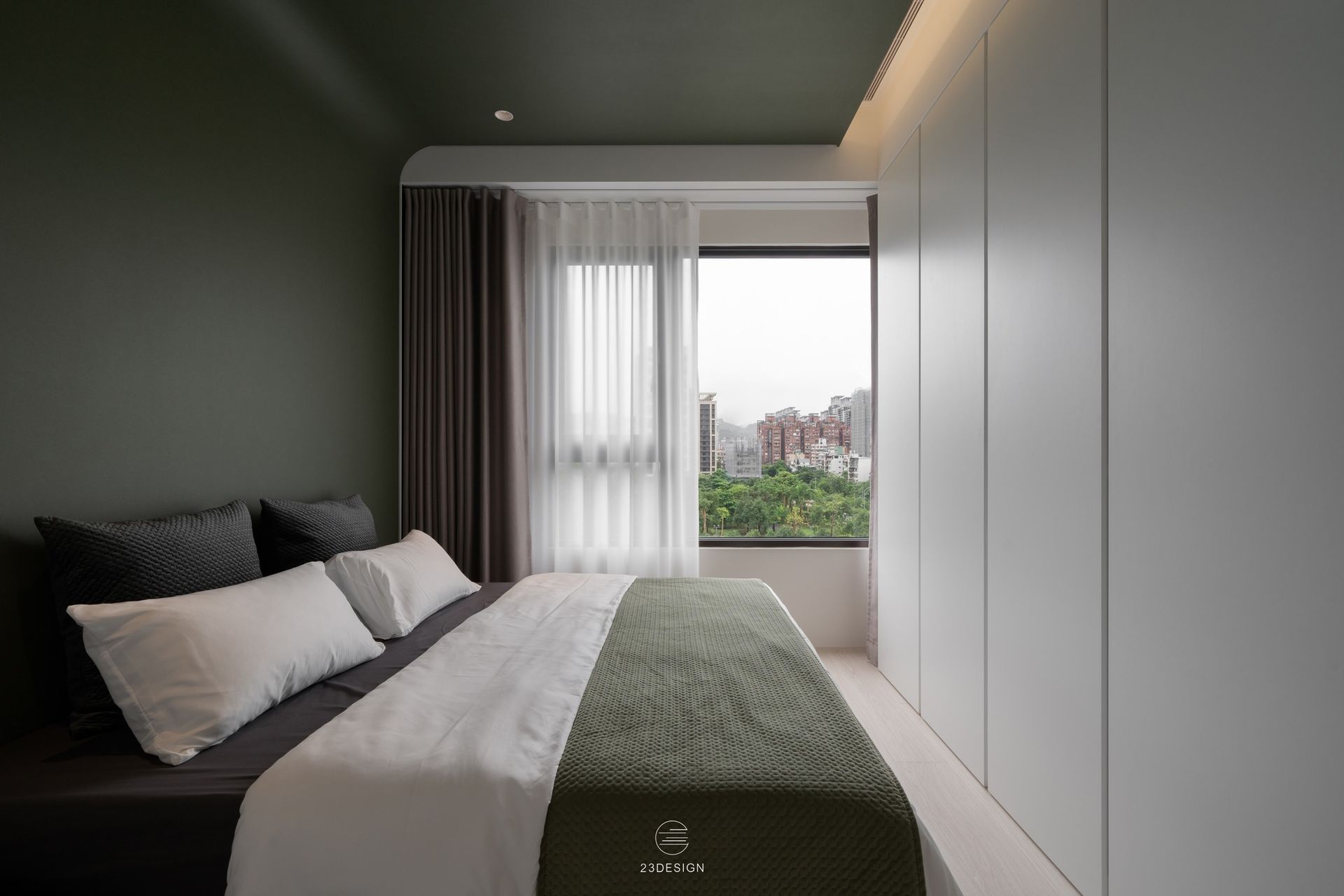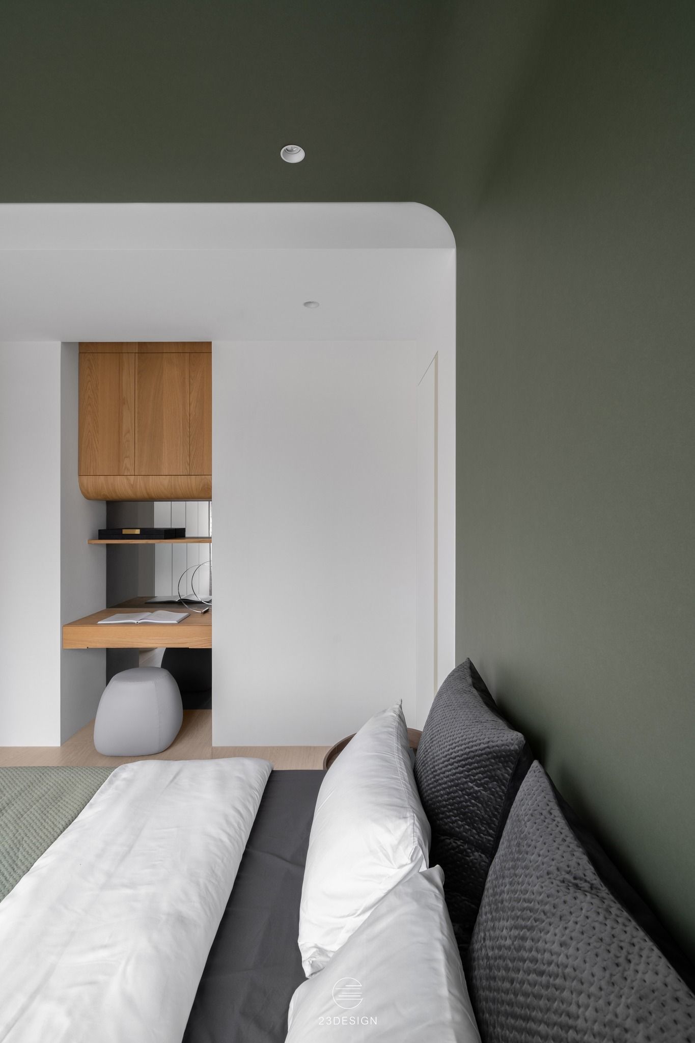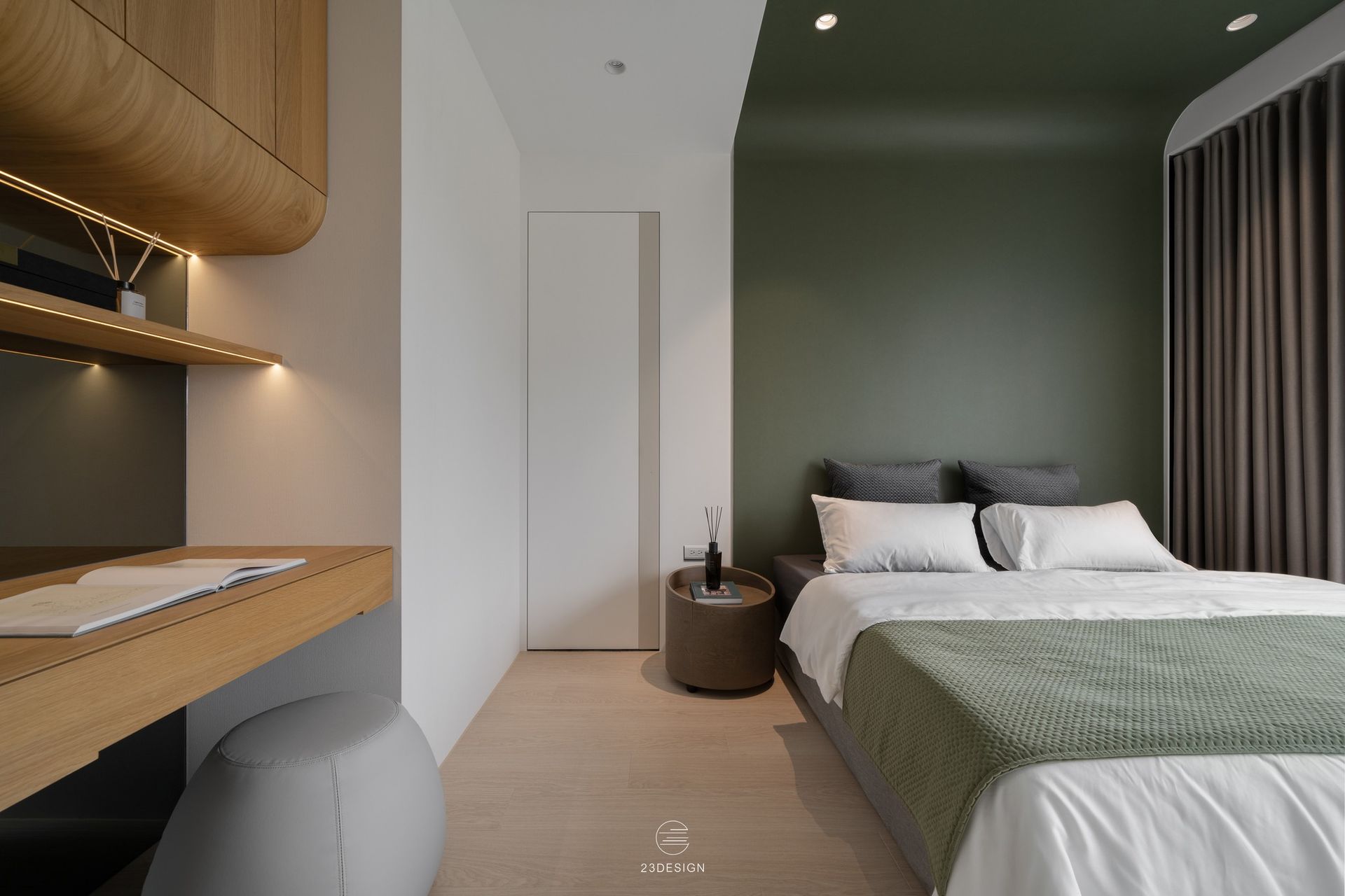 臥室背牆都以綠色作為延伸,搭配淺色系的家具單品,讓自然生機融入空間,享受寧靜與和諧的日常。