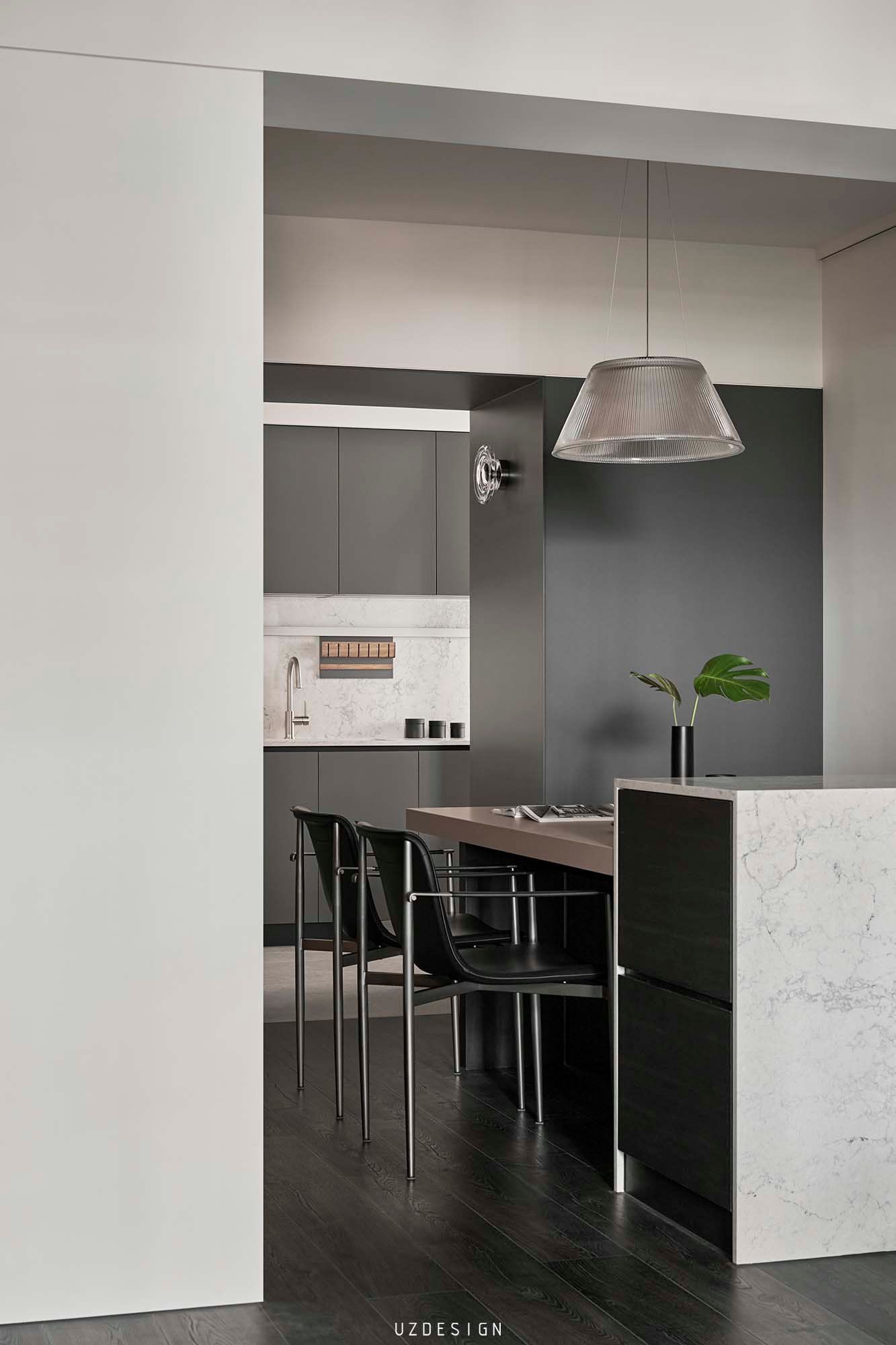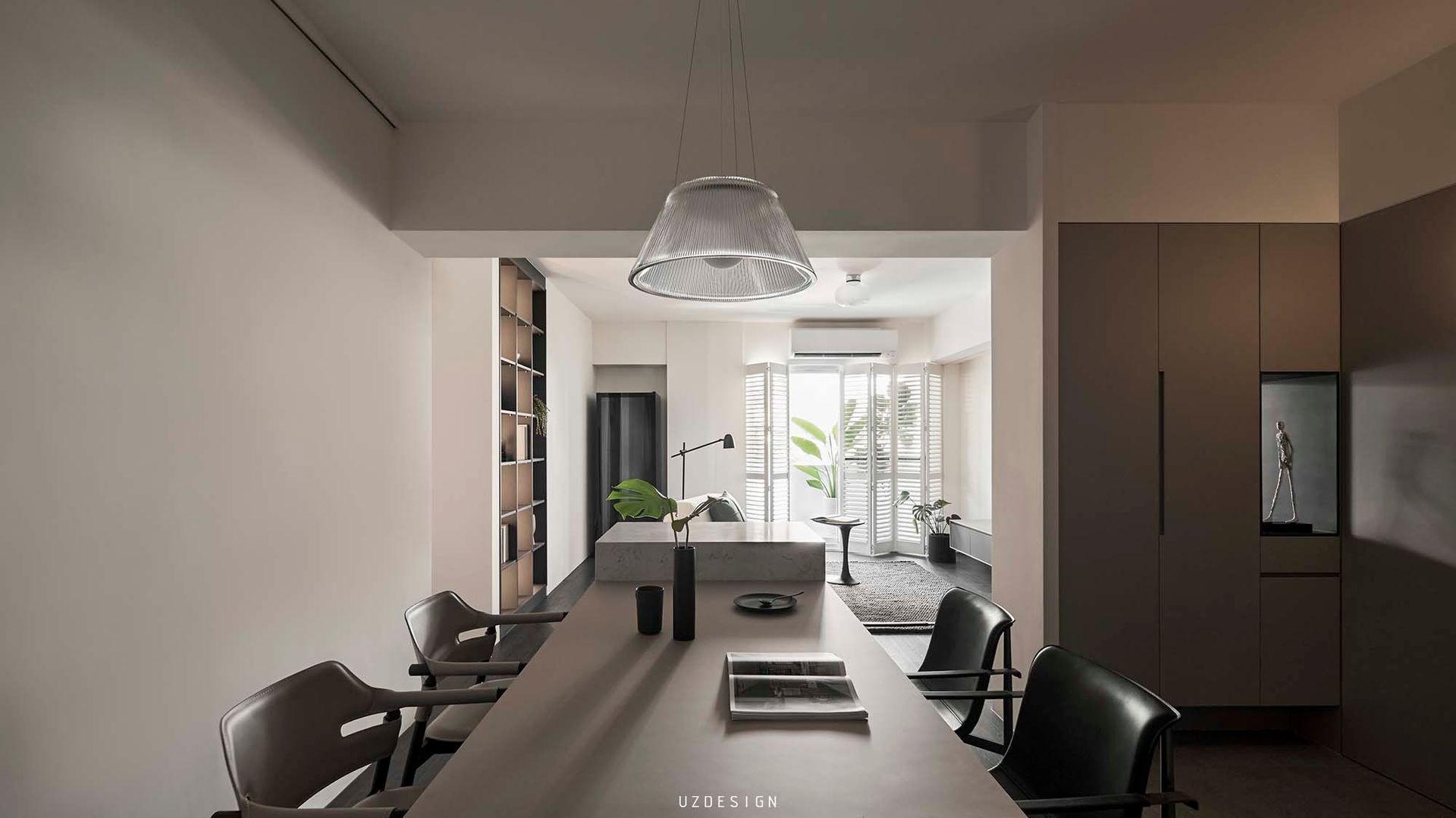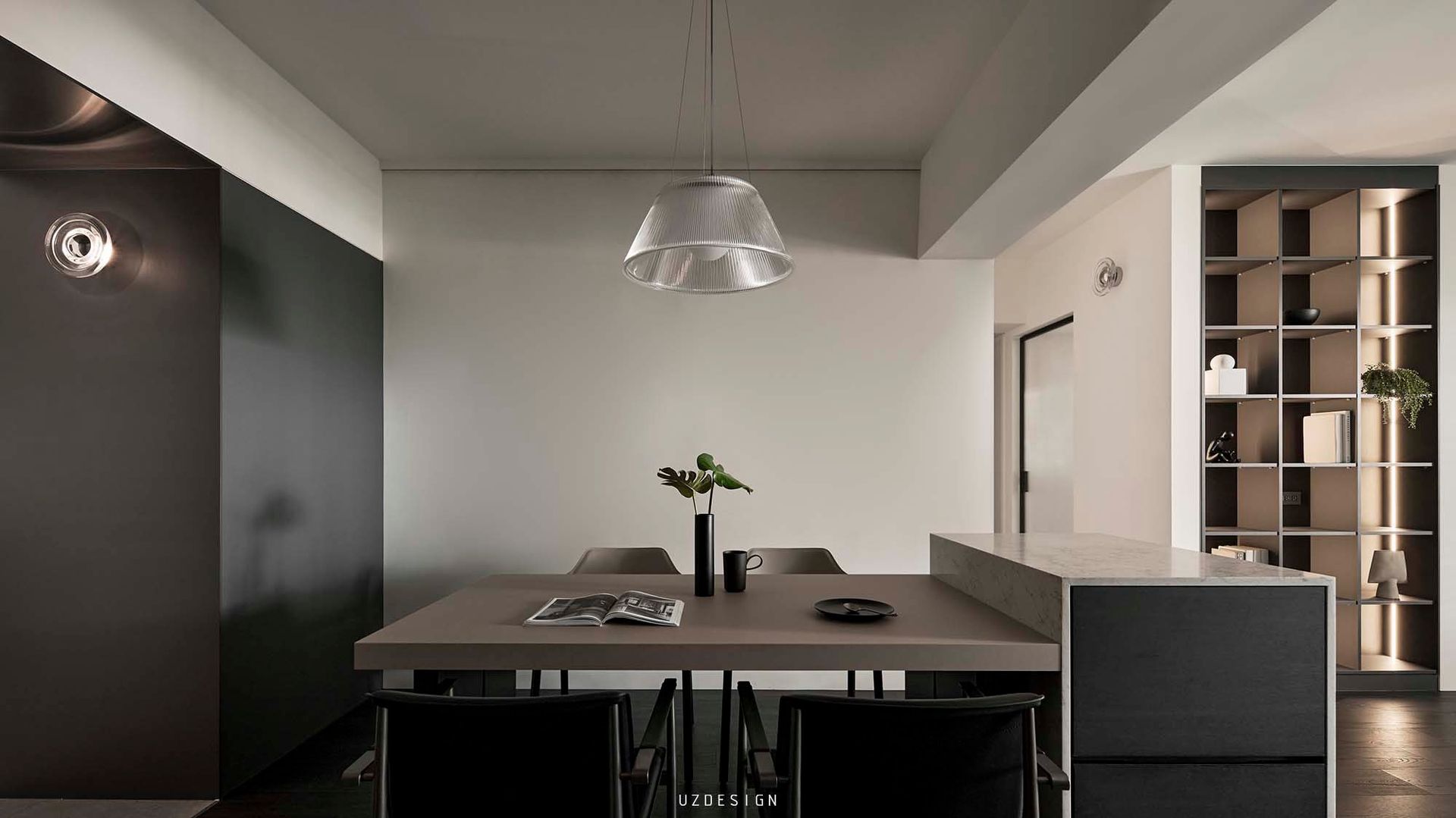 餐桌的兩側,擺放著風格不同的餐椅,一側溫潤、一側理性,木質結構帶來穩定與親近,線條柔和讓人自然放鬆,另一側則以金屬語彙回應空間的俐落感,清晰、克制,帶著理性的節奏,讓用餐空間多了層次。