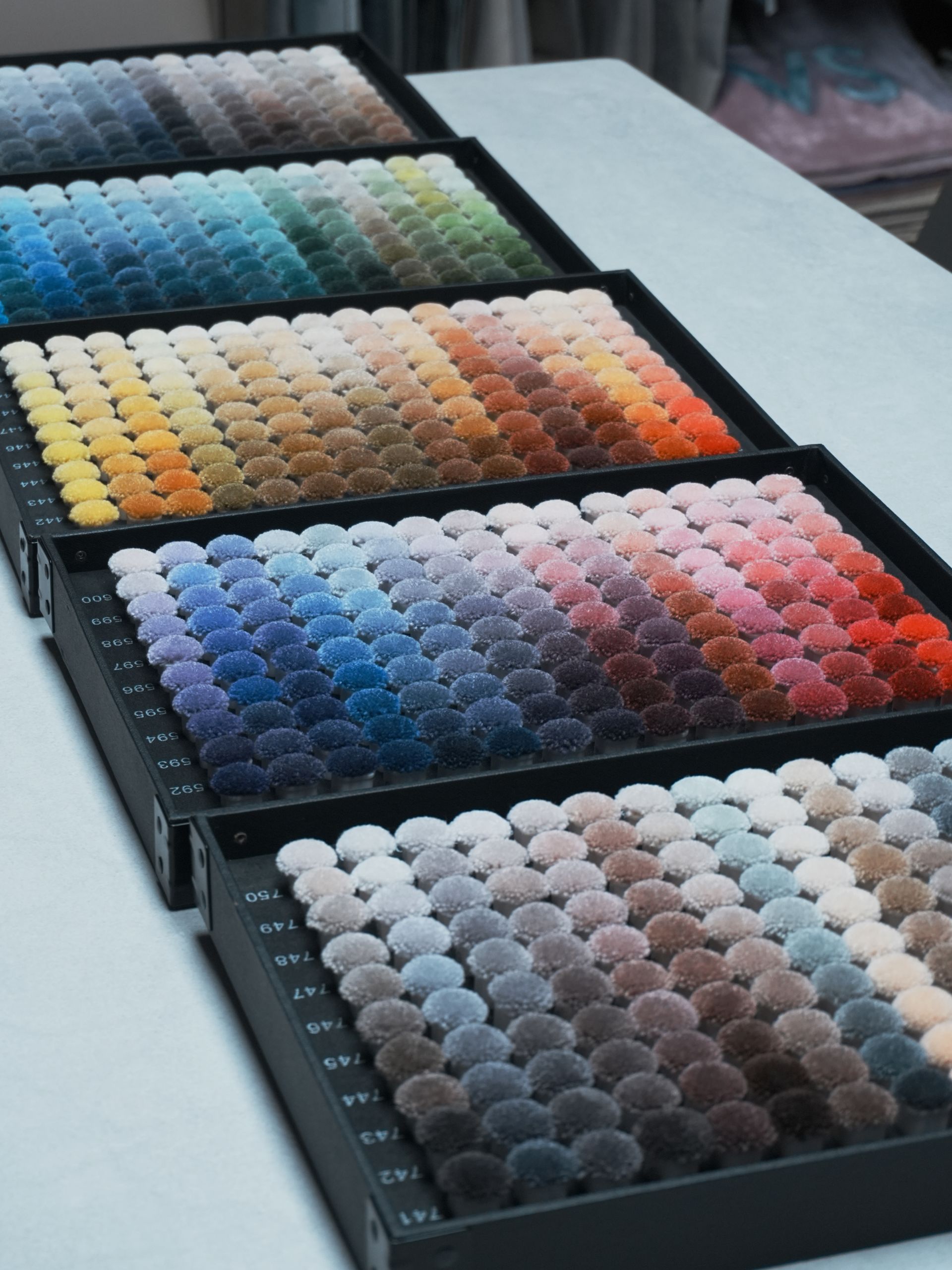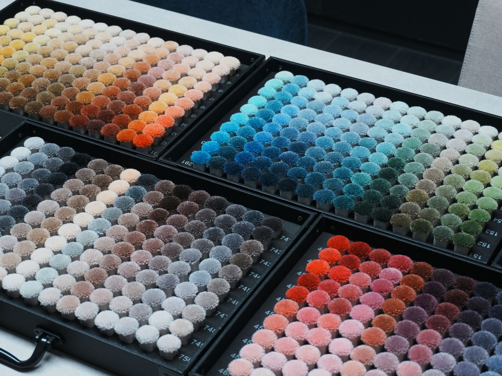 規格品地毯提供固定花色樣式,門市備有小樣可實際觸摸與比對。